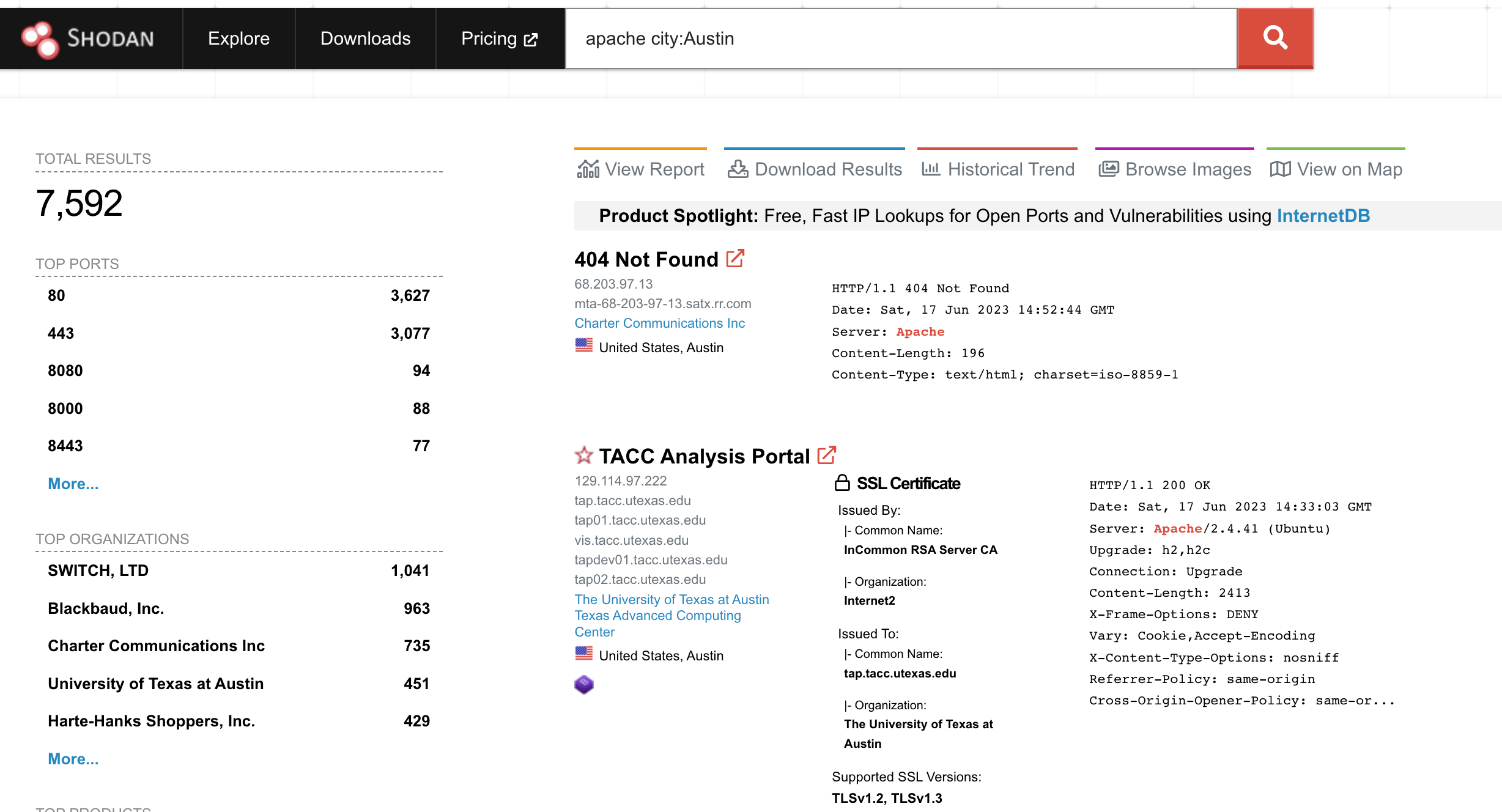 A search for apache yields results for the popular open source apache web server, and in this case I narrowed my search to an individual city: